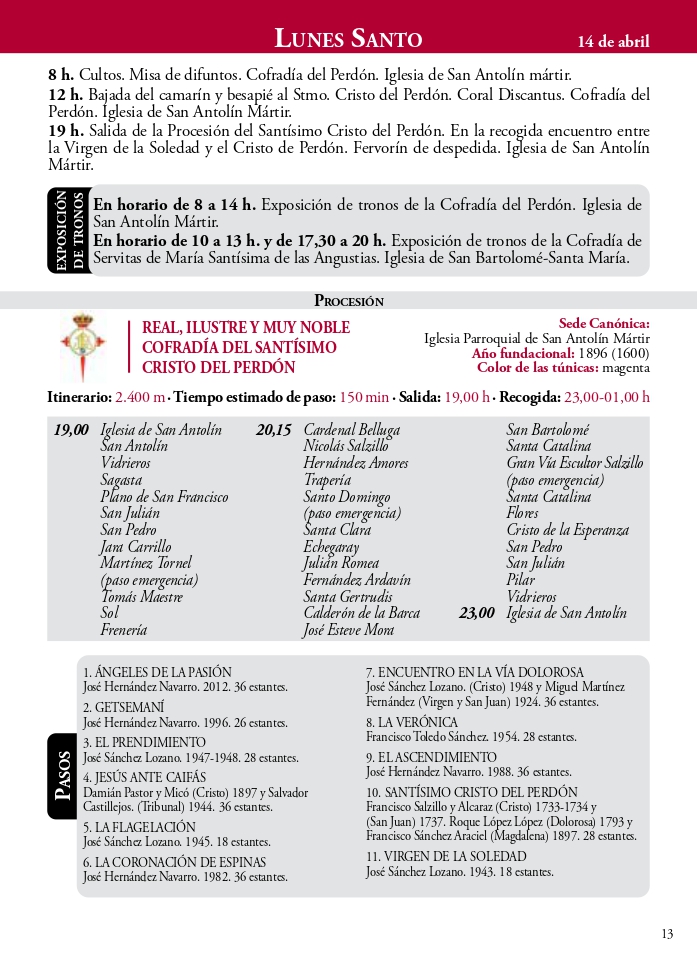 8 h. Cultos. Misa de difuntos. Cofradía del Perdón. Iglesia de San Antolín mártir.