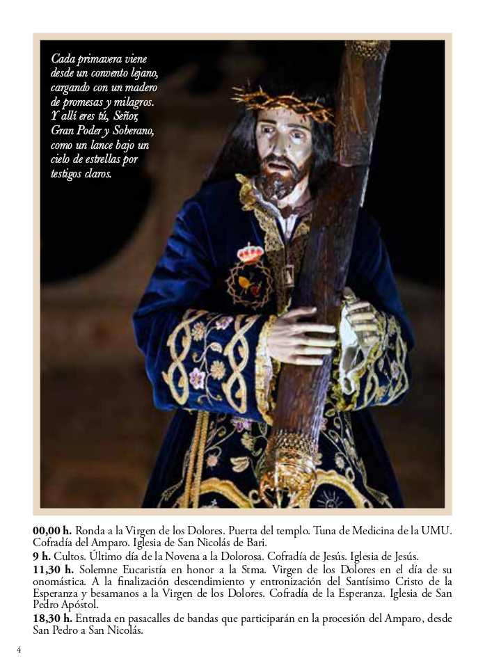 7 a 10 de abril, 20 h. Cultos. Novena a la Dolorosa, 5º a 8º dia. Cofradía de Jesús. Iglesia de